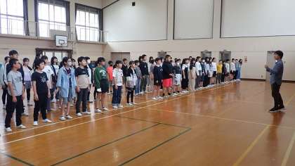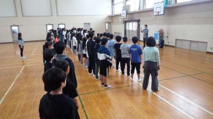これまでは各クラスで練習していましたが、今日は初めて6年生全体で歌ってみました。はじめは緊張が見られ、ずいぶん寂しい歌声でしたが、担任の先生の声掛けで自信をもって歌うようになりました。およそ1か月後の本番に向けて、毎日少しずつ練習を重ねていきたいと思います。