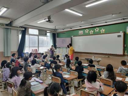 昨日、代表委員会がありましたが、1・2年生のクラスには代表委員がいないので、そこで決まった内容を伝達するために6年生が教室に来てくれました。6年生が説明してくれる内容を、みんな静かに聞いていました。