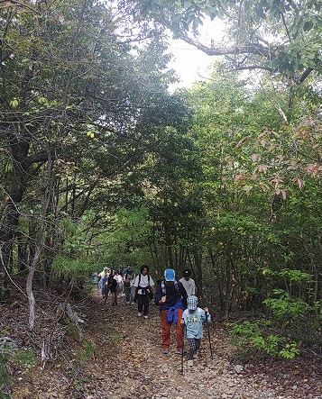 みんな元気に楽しく歩き、登りは少ししんどそうな場面もありましたが、けがもなく、景色を見ながらわいわいとにぎやかに過ごすことができました。たどりついた山頂では、眺めを楽しみ、みんなで記念写真も撮りました。