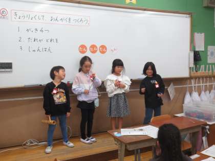 誰がどの楽器を使ってどの順番で鳴らすか話し合い、練習をしてから発表しました。