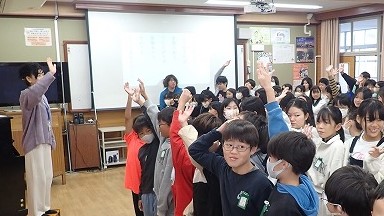 6年生は、合同の音楽の学習をしています。