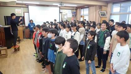 学童大音楽会に向けて、声の出し方、息の吸い方を重点的に練習しています。