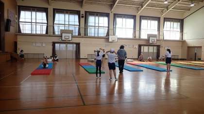 6年生は、体育の「マット運動」の学習をしています。