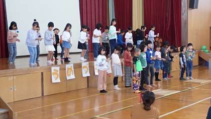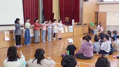 午後のステージ発表では、ゲストの先生と一緒に歌を歌ったり、児童館の子どもたちが手話やけん玉、こまの発表をしたりしました。みんなで手拍子をしながら発表を見て、とても楽しい時間を過ごすことができました。
