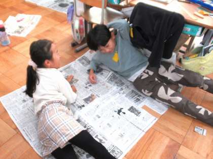 4年生の算数科『面積』の学習では、計算だけではなく広さの感覚をつかむのも大切です。新聞紙で1平方メートルの面積を作り、どれくらいの広さなのか体験していきました。