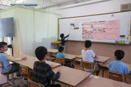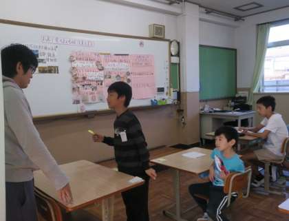遠足でのお昼ご飯を注文することに向けて、自分の食べたいものを注文する練習をしました。今日は先生がお店役なので、たこ焼きを頼む人には「マヨネーズはかけますか?」やラーメンを頼む人には「時間がかかりますが、よろしいですか?」などのアドリブを入れながらやりとりをしていました。