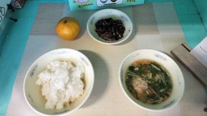 「はりはり鍋」とは、水菜をかんだ時の「はりはり」という音から名づけられました。今日は、鶏ひき肉とまぐろ水煮、細ねぎ、しょうがを使って、給食調理員さんがひとつひとつ手作りで作ってくださったつみれがたっぷり入っています。とてもやわらかく、おいしいつみれを、シャキシャキした食感の水菜と一緒においしくいただきました。今日は寒い1日になったので、体がぽかぽかと温まりました。