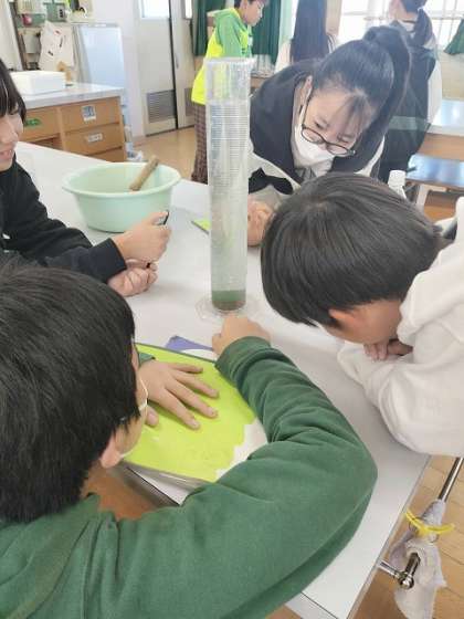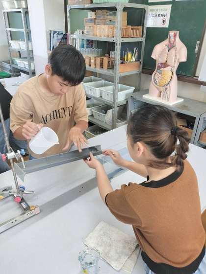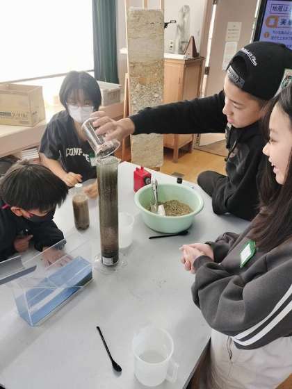 1回目、2回目と地層が積み重なっていく様子をみて、子どもたちから歓声が上がっていました。