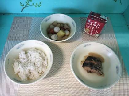 今日の「関東煮」は、ちくわ、じゃがいも、にんじん、だいこん、こんにゃく、うずら卵と、とてもたくさんの具が入った具だくさんです。じゃがいもやだいこん、にんじんなどにおだしの味がよく染みこみ、とてもおいしい関東煮でした。「さばのしょうが煮」は、しょうがの味がさっぱりしており、魚が苦手な子も食べやすい献立でした。