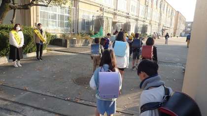1か月前と比べると一気に季節が進んだ朝になりましたが、登校してくる子どもたちに「おはようございます」と声をかけてくださり、とても暖かい気持ちになりました。
