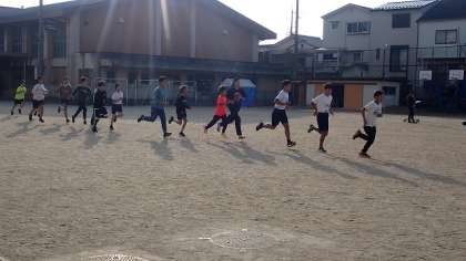 校内で記録会を行い、設定されたタイムを切ることが目標です。設定タイムを切ることができた子どもたちの中から、6年生の児童数によって決められた参加上限人数までが参加できます。設定タイムを切れるように、さらに、少しでも良いタイムが出せるように、一生懸命走っています。