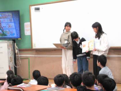 読書週間では、図書委員による読み聞かせがあります。今日から早速担当クラスに読み聞かせに行きました。対象は1年生から4年生までとむくのき学級ですが、木曜日には中間休みに図書館でも読み聞かせがあるので、たくさん来てくれるといいなと思います。
