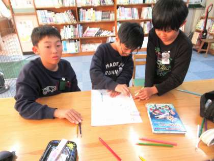 今日から始まったもみじ読書週間のため、図書委員では読み聞かせの練習をしたり、ポスターをかいたりしました。みんなが読書を楽しんでくれるよう、がんばっています。図書館にもたくさんのポスターができているので、また図書館にも足を運んでくださいね。