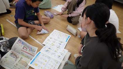 新聞紙や広告を使って防災スリッパや紙食器を作り、身近なものを生かして工夫することの大切さについて考えることができました。