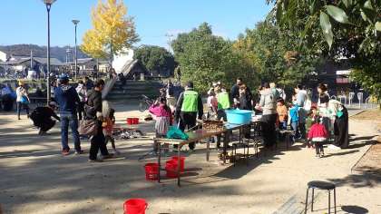 12月1日の日曜日に、構口親水公園で梅津まちづくり委員会主催の「梅津のわんぱく冬祭り」が開催されました。