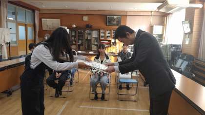 今日はまず、スポーツで活躍した子どもたちの表彰式を行いました。10月に行われた、「第53回京都市小学生陸上記録会」で上位に入賞した子どもたちと、11月に行われた「第36回市民スポーツフェスティバル リレーカーニバル」に出場した子どもたちに、校長先生から賞状を渡していただきました。