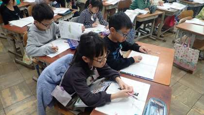 「一列に並んだ子どもたちの中で、自分の前に○人の子どもがいるとき、後ろには何人並んでいるか」など、いろいろな順序数の問題を図に表して考えました。大人でも聞いただけではうっかりまちがってしまいそうな問題ですが、図にかくことでしっかり答えを求めることができました。