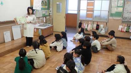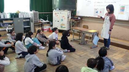 今日は3年生、4年生、6年生のクラスに来てくださいました。10分ほどの短い時間ですが、すてきなお話の世界に浸ることができました。