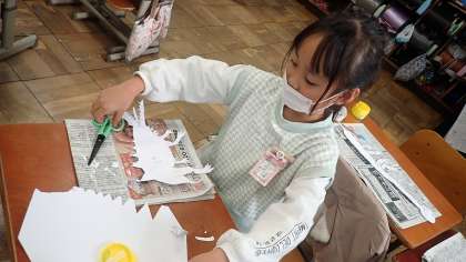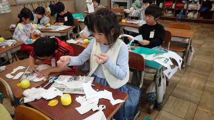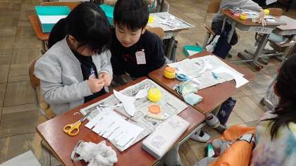2年生は、図工の「たのしく うつして」の作品づくりをしています。