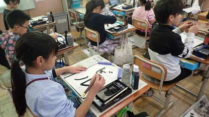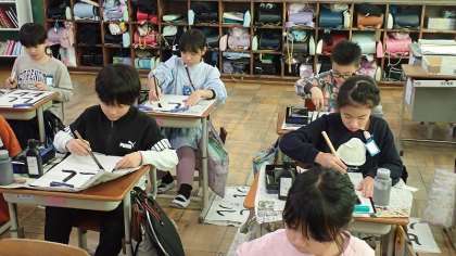 3年生は、毛筆書写の学習をしています。