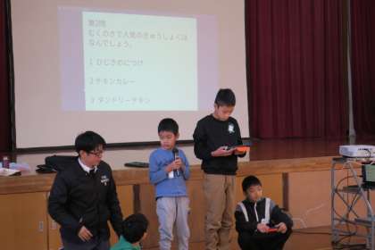 梅津中学校と梅津北小学校の友達が梅津小学校に来て、交流会を行いました。各校からの出し物やゲームを通して、お互いのことを知り、仲良くなりました。中学生からは、中学校のことを教えてもらったり、クリスマスのプレゼントをもらったりしました。何をもらったのかは、また子どもたちに聞いてみてくださいね。