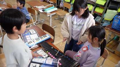1年生は、音楽の「ようすをおもいうかべよう」の学習をしています。