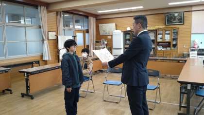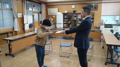 終業式のあとは、絵画や習字、作文などのコンクールで賞をもらった子どもたちの表彰式がありました。