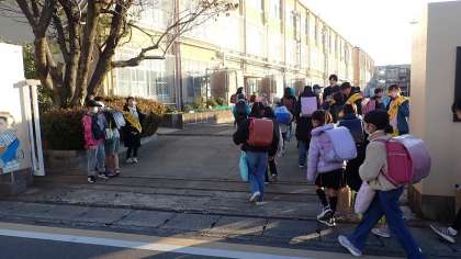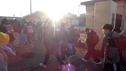 今日から、3学期の学校生活が始まりました。今日は水曜日なので、計画委員会のあいさつ運動の日です。3学期初日から、計画委員会の5・6年生たちがあいさつをがんばっています。