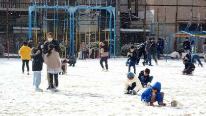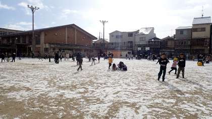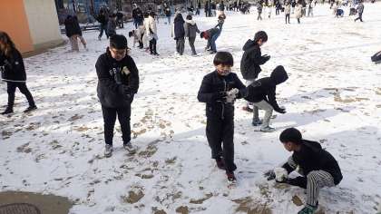 積もった雪を集めて雪だるまを作ったり、雪の感触を楽しんだりしました。