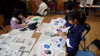 みんな、ひとりひとりの凧を仕上げることができました。(少年補導委員会のみなさんは、合わせて明日の大凧の準備もしてくださいました。)