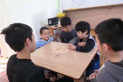 1月のともだちウィークでは、『世界の国を知ろう』というテーマで韓国のじゃんけんやインドネシアの遊びについて知り、実際に行いました。インドネシアの遊びでは、「バンブーベラ」という割り箸を使った遊びをしました。日本の将棋崩しによく似た遊びで、静かな時間を感じながら楽しみました。