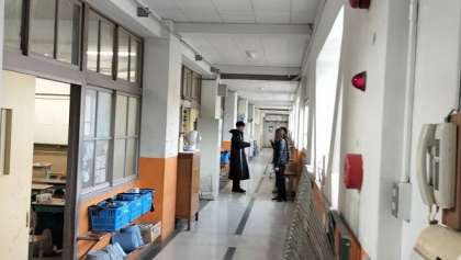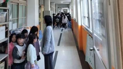 今日の訓練では、避難経路に危険個所が発生した場合を想定し、通行できない場所をつくりました。教職員もどこが通行不可になっているかは事前に知らされていないため、各階の教職員が避難経路の状況を確認し、通れない場所を職員室に連絡します。職員室では、それを受けて安全な避難経路を設定し、放送で避難経路の変更を伝えて、2次避難を開始しました。