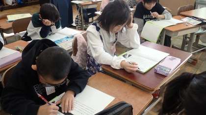 本文から、「どんなロボットがあるのか」「どんな時に助けてくれるのか」について、段落ごとに書かれている内容を読み取りました。目印になる言葉を見つけ出すと答えにたどり着けることに気付き、たくさんの文の中から答えを見つけ出すことができました。