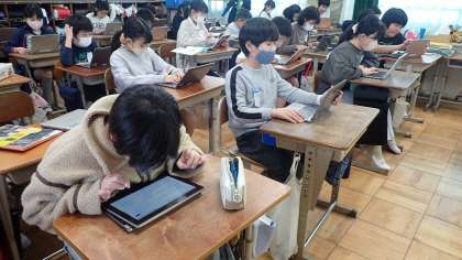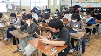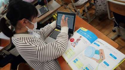 この単元では、防災について学びを深めています。先週も、地震に対する避難訓練を行ったばかりですが、いつ起こるかわからない災害に普段から備えておくことが大切です。「災害発生時にこんなものがあると便利」「避難所や学校にあるもの」など、テーマごとに調べ学習に取り組んでいます。まずは一人で調べ学習を行い、このあと同じテーマの子どもたち同士でさらに深めていく予定です。