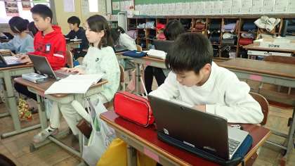 明治、大正時代と今のまちの様子や道具の違いを調べています。道具では、昔に使われていた洗濯板やごはんを炊いていたお釜は、今は電気洗濯機、電気炊飯器に変わり、人々のくらしがより便利に、くらしやすくなっていることに気付いていました。