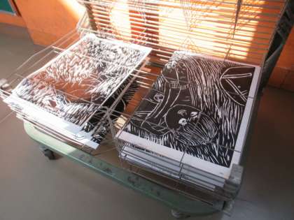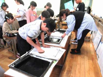 4年生は、図工の版画の作品づくりをしています。彫り終わった子たちから刷り始めました。実際に和紙をめくってみるまで、自分の彫った線が上手く出ているか分かりません。ドキドキしながらめくる様子が見られました。