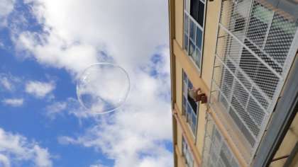 何度もくり返すうちに、上手にしゃぼんだまを作るコツをつかんできたようで、大きいしゃぼんだまをいくつも作って空に飛ばしていました。