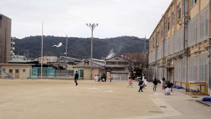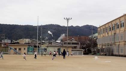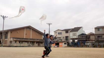 風を受けて凧があると、子どもたちはとてもうれしそうにしていました。ひょっとすると、運動会のときよりも速く走れたかもしれませんね!