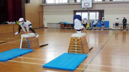 今日から、新しい単元の学習が始まりました。ひさしぶりのとび箱の学習なので、しっかり体をほぐし、安全に気をつけて学習を進めました。これまでにできるようになったいる技で、高さに挑戦しました。