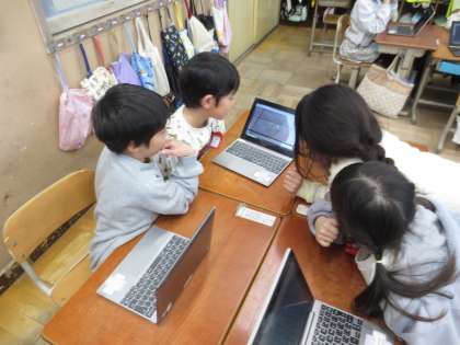 お気に入りのさわりごこちを見つけた後は、その写真を撮って、ロイロノートを使って交流しました。