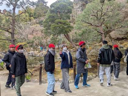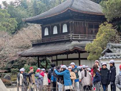 書院造で有名な「東求堂」や、枯山水の庭園を見学しました。すみ絵や能・狂言、茶の湯など、今に伝わる室町文化を生み出した時代の空気に触れることができたようです。