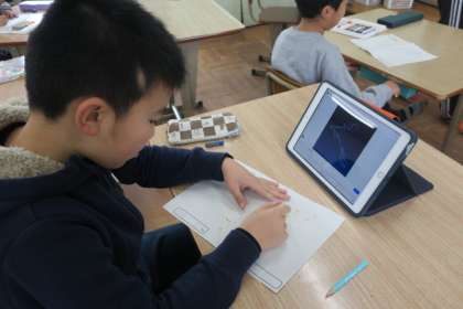 科学センターでのプラネタリウムの学習のために、自分の星座を調べて、色塗りをしました。星座は、誕生日から決まることを知り、「ぼくは〇〇座なんや。」と嬉しそうに色を塗る友達もいました。