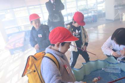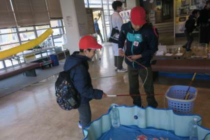 磁石を使った魚釣りでは、珍しい魚がいて、みんな夢中で釣っていました。