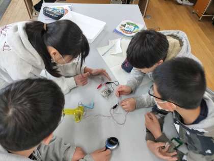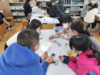 LEDが環境に優しい省電力の照明だということを知っている子も多く、「省エネっていうからなかなか消えないんじゃないかな」「明るいんじゃないかな」など話しながら実験していました。