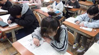 その後、作った問題を友達同士で交流し合いました。友達が作った問題の中には自分が思いつかなかったようなものもあり、みんなで楽しく交流をすることができました。