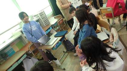 お気に入りの場所として運動場を紹介していた子は、「みなさんは、ここで運動会の練習をしたことを覚えていますか?」と問いかけ、聞き手の心をひきつけるような工夫をしていました。