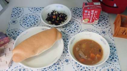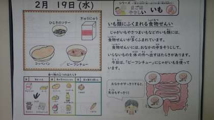 「ビーフシチュー」は、給食調理員さん手作りのルーが絶品です。ほどよくまろやかになったトマトの酸味とたっぷりのコク、甘さの感じられるルーが、牛肉や野菜をより一層おいしくしてくれます。おいしい給食のシチューにみんな大喜びで、おいしくいただきました。