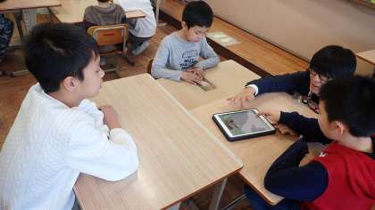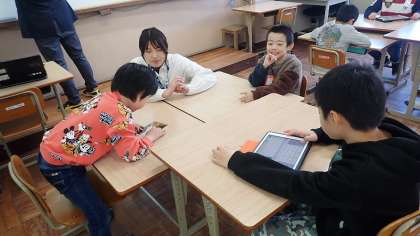 「アートカード」を使って、どんなものに見えたか、どんなことを想像したかを交流し合う学習です。同じものを見ても、人によって感じ方は様々です。自分にはどんな風に見えたかを伝えるだけではなく、友達がどんな風に見たのかを共感的に聞いたりすることができました。