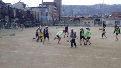 6年生は、体育の「サッカー」の学習をしています。