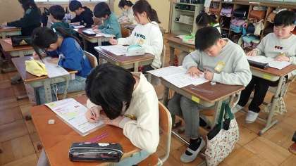 4年生は、これまでに学習した漢字の復習をしています。4年生では202の新出漢字を学習しました。最後の漢字50問テストに向けて、みんながんばってくださいね!